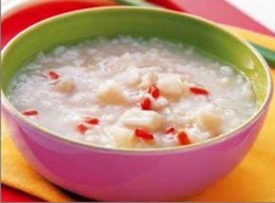 制作方法:先将大米淘干净和平时一样熬粥就好,然后放入椰肉一起炖煮,放入松仁渣,粥好后接下来放入调料继续小火熬煮,直至所有材料完全熬好,放入鸡精和几滴香油就可以出锅了。