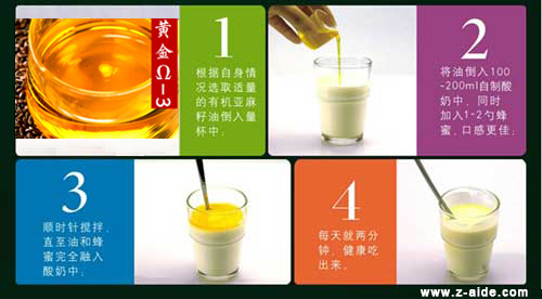 每天食用约20ml-40ml,最佳食用方法亚麻籽油拌酸奶吃,或三餐加在食物中、包馅做饺子、用面包滴蘸做早餐、适当加入做好的靓汤或者蒸好的食物中,用于凉拌菜等。坚持一个周期,即可基本清除代谢体内长期食用不健康油所残留的垃圾。