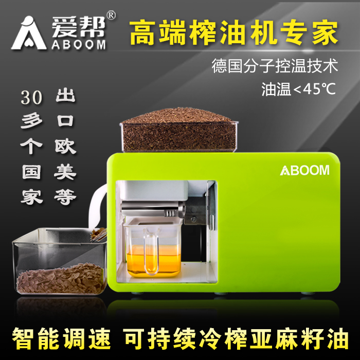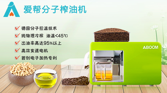 1、自主研发分子控温技术获国家专利,爱帮分子榨油机压榨温度全行业最低,油品温度<45°,完全保护油里的营养成分,例如榨取的亚麻籽油里α-亚麻酸含量高达53%以上;