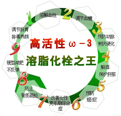 降三高、预防心脑血管疾病;调节痛风及类风湿;抑癌抗癌,防止癌症转移;抑制血栓,预防心肌梗塞、脑梗塞;抑制过敏反应、减轻哮喘;防衰老、抗老化,改善肾功能;预防改善骨质疏松、关节炎;预防老年痴呆,促进脑部灵活。