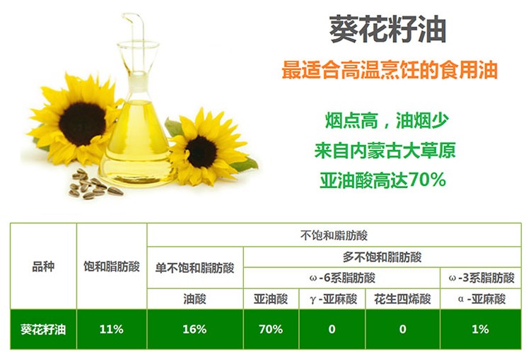 可见,葵花籽油是耐高温炒炸的理想食用油。