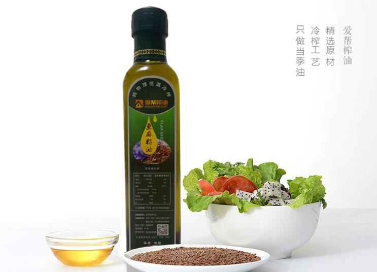 四、亚麻籽油:适用于凉拌最好,就算需要加热,也只能短时间的加热。亚麻籽油是由亚麻籽经过压榨制取的油类,被认为是陆地上最补脑的天然食物,它对婴幼儿的智力发育、青少年提高记忆力、中老年健脑以及预防老年痴呆具有重要的作用。α-亚麻酸和亚油酸的平均含量分别为45.17%和21.19%,其中以甘肃亚麻籽中的α-亚麻酸和亚油酸含量最高,分别达到53.20%、25.70%。亚麻籽油对孕妇和婴幼儿特别有益,因此亚麻籽油也俗称月子油和聪明油。