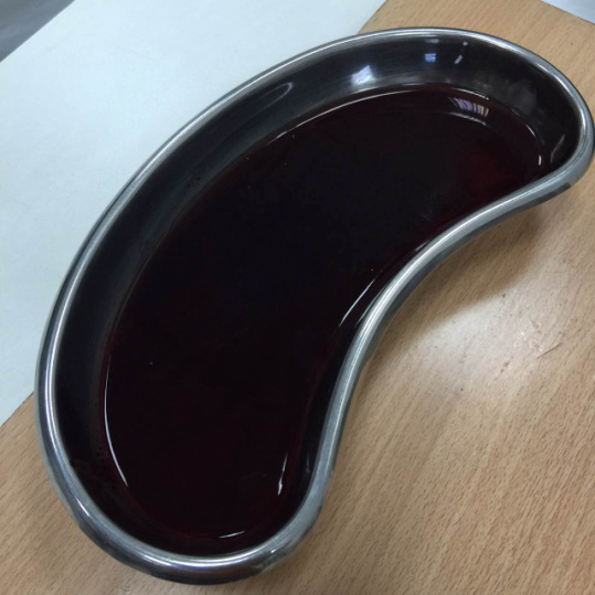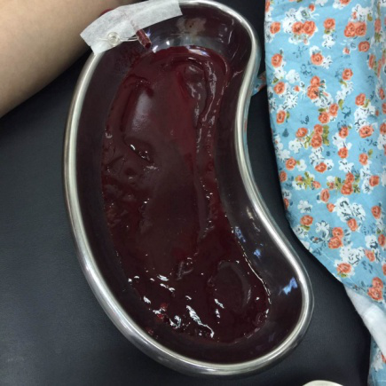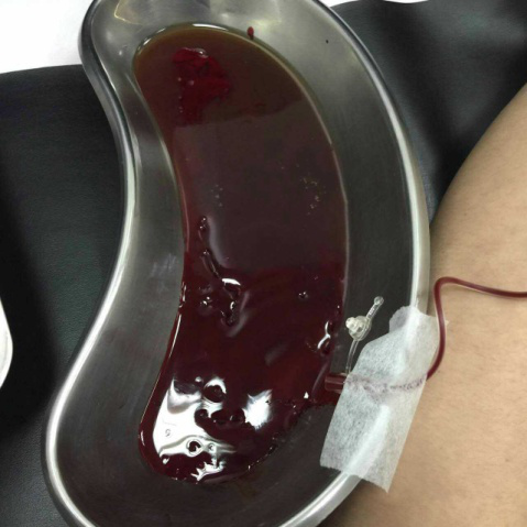 此人身高一米58体重86公斤,他从小在农村长大,家�都是吃猪油。家里的条件比较好,经常也是大鱼大肉。现在身体已经出状况了。他血液的颜色深红色且走到一半就凝固了。伴有呼吸急促,肾脏不能正常代谢水份,需要洗肾。