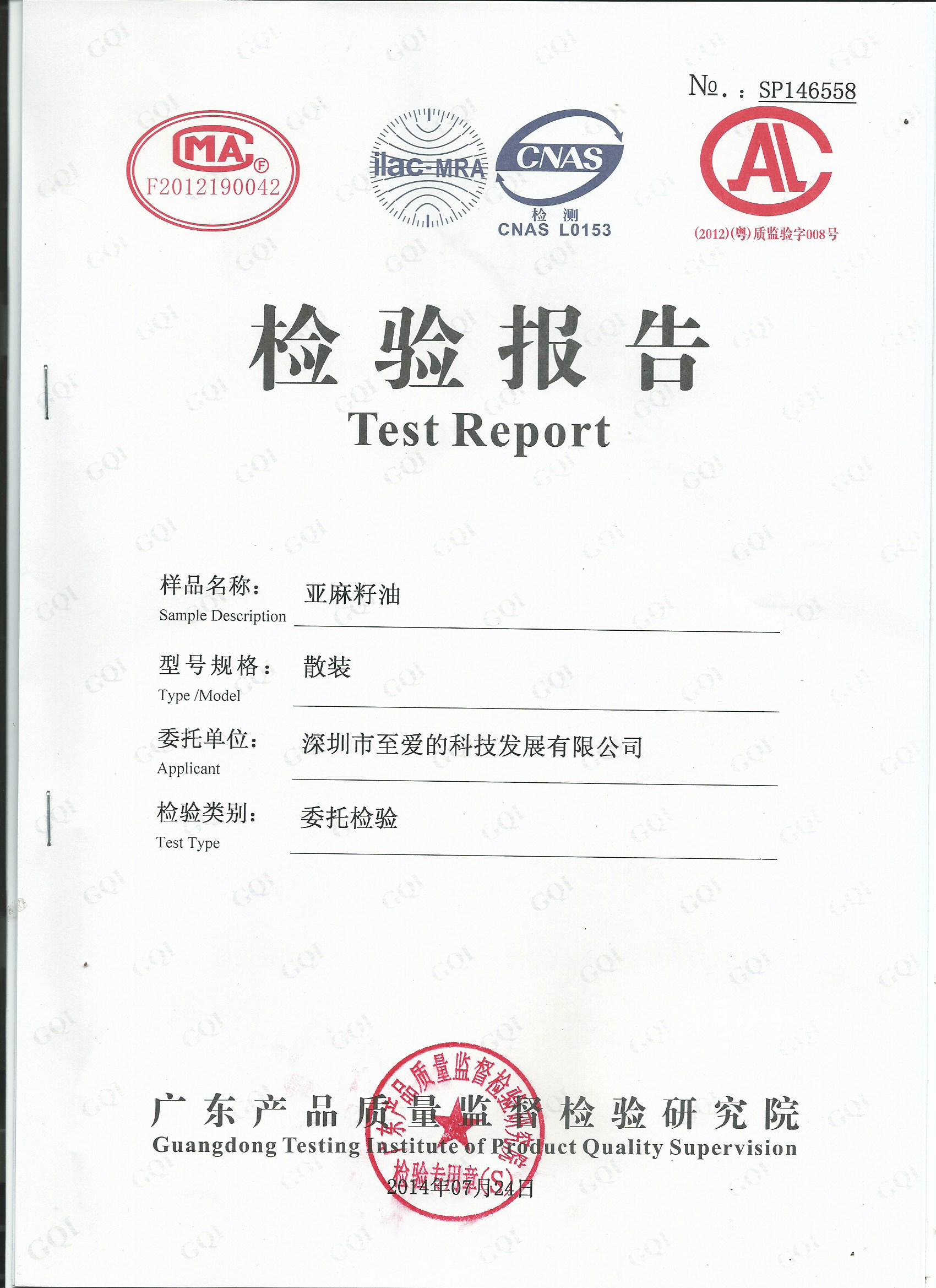 亚麻油品检测报告
